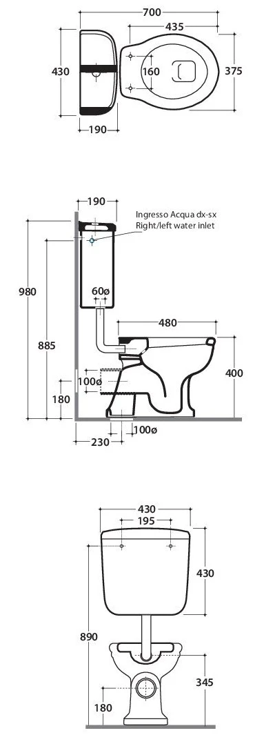 Бачок для унитаза Globo Paestum для низкой трубы PA114BI