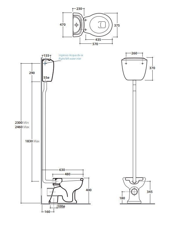 Бачок для унитаза Globo Paestum для высокой трубы PA010BI