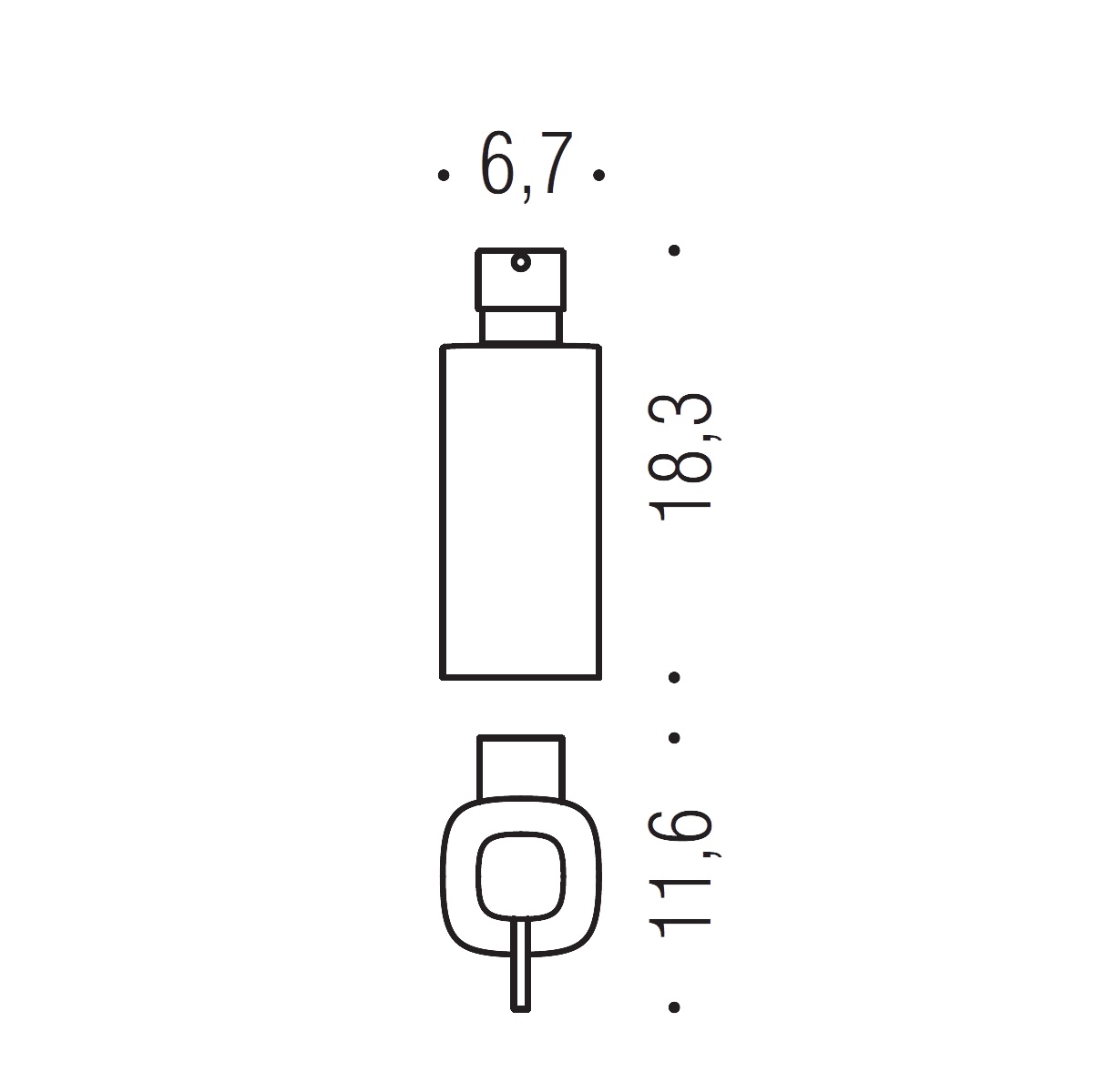 Размеры: 6,7х11,6х18,3 см