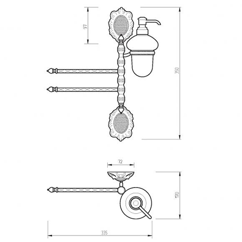 Двойной полотенцедержатель с дозатором Migliore Cleopatra (34см) 16646 бронза