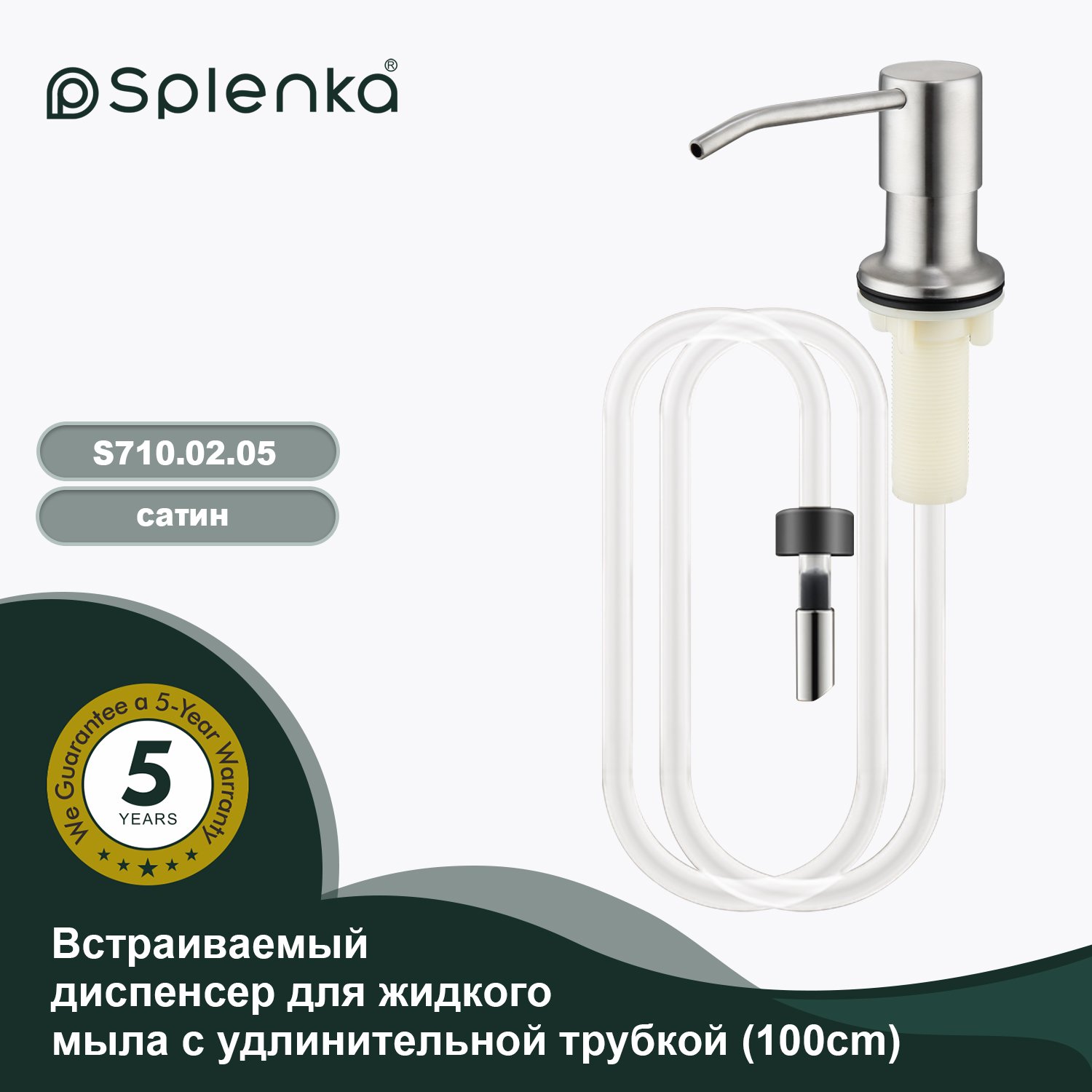 Встраиваемый диспенсер для жидкого мыла с удлинительной трубкой (100см) Splenka сатин S710.02.05