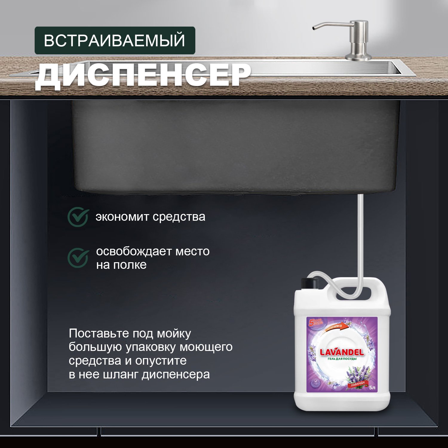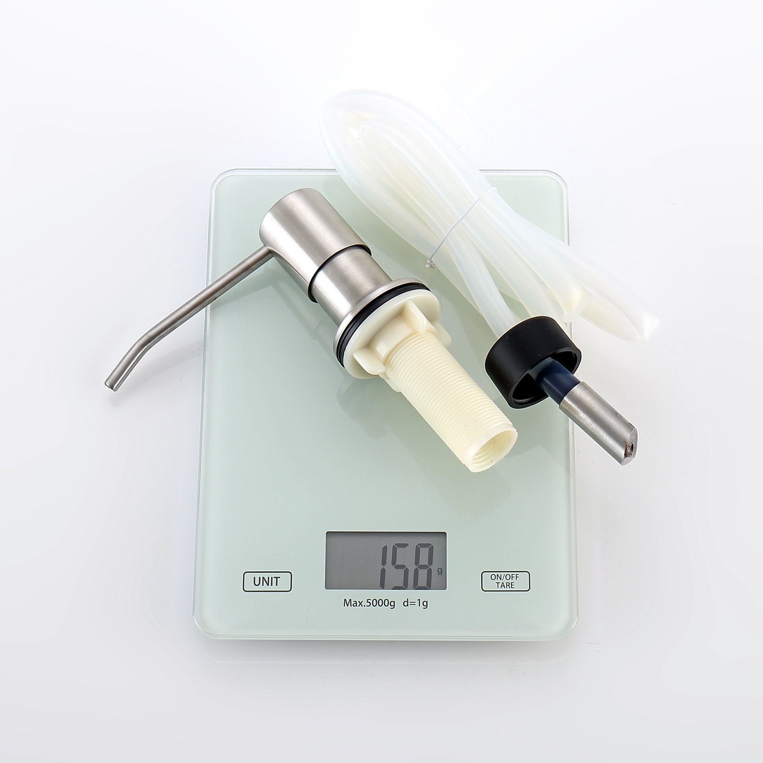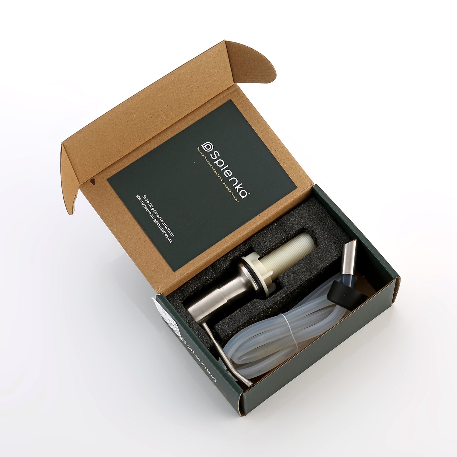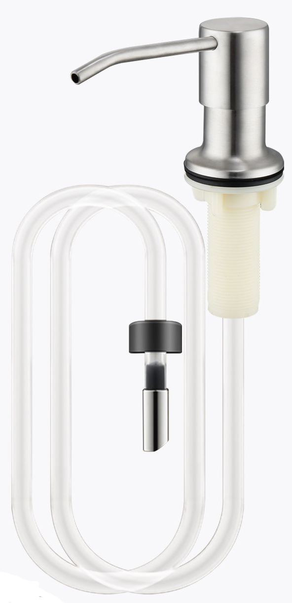 Комплектация: Дозатор с нажимным механизмом, силиконовая трубка 100 см, инструкция по установке, гарантийный талон