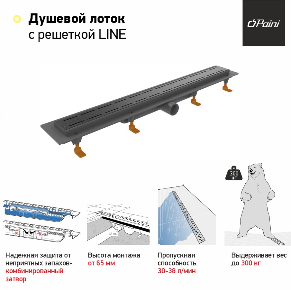 Душевой лоток с решеткой Paini Line (75см) CH750LC черный матовый