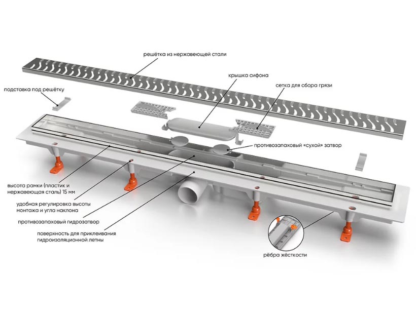 Высота рамки желоба - 15 мм
