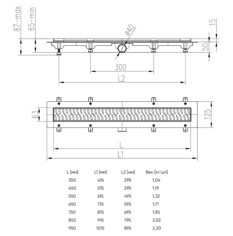 Диаметр слива: 40 мм