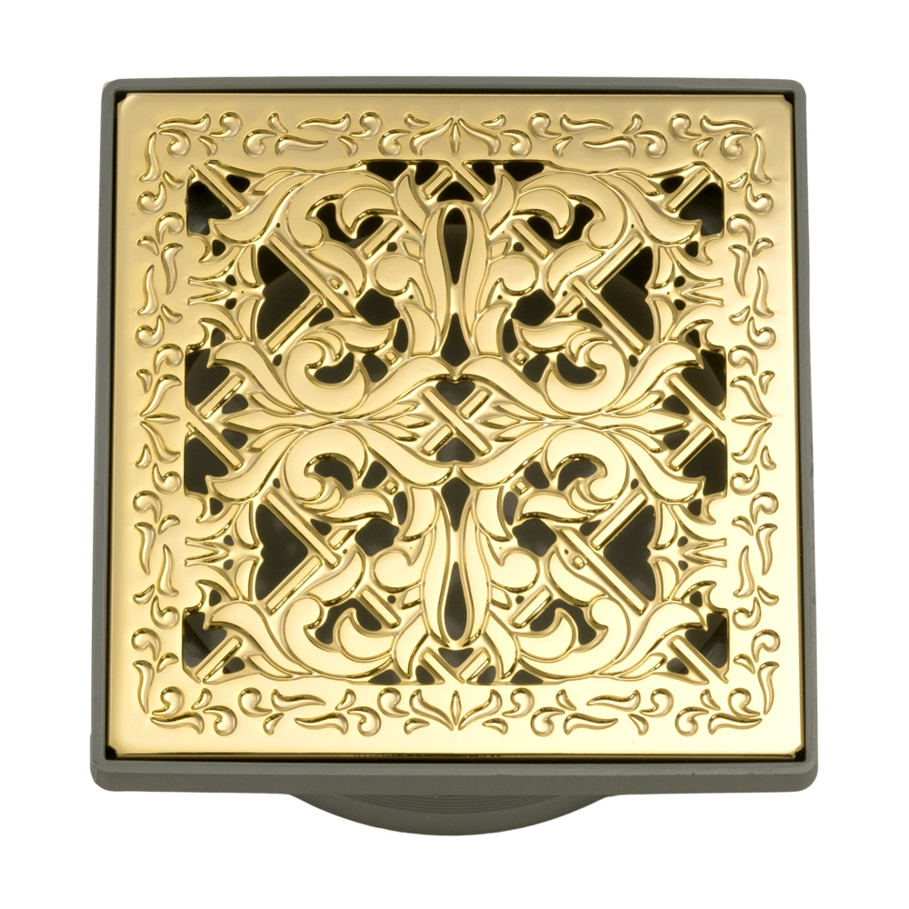 Трап душевой с гидрозатвором и декоративной решеткой Migliore 24891 (11х11 см) золото