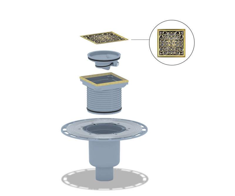| Комплектация | Трап Viega 5902+решетка Узоры 10х10 см |