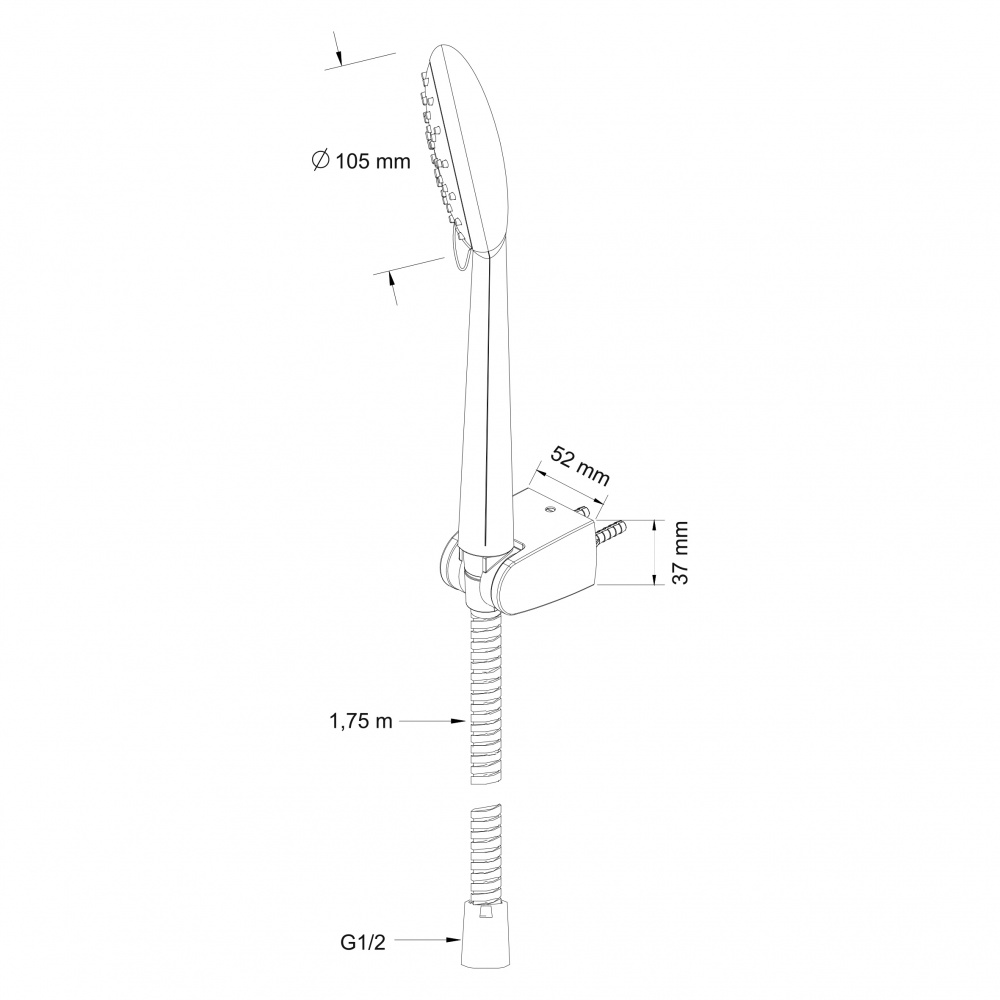 Диаметр лейки ручного душа, мм: 105