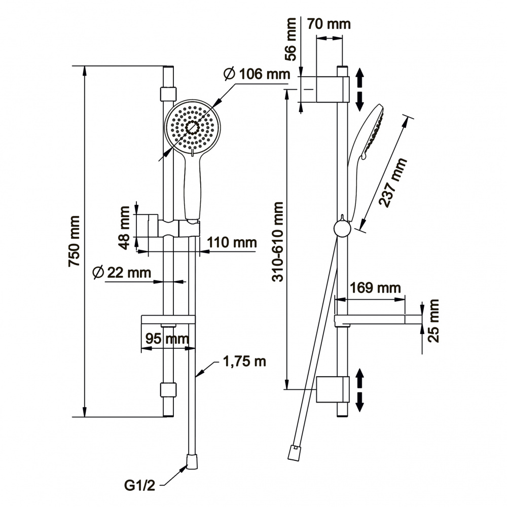 - шланг PVC с металлической структурой и системой против скручивания шланга;