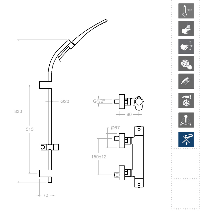 Серия имеет системы экономии воды и энергосбережения, эффективную комбинацию, которая включает в себя открывание в положении холодной воды и ступенчатое открытие крана в две фазы. Таким образом, системы холодного открывания предотвращают излишнее потребление горячей воды с соответствующей экономией энергии и заботой об окружающей среде.