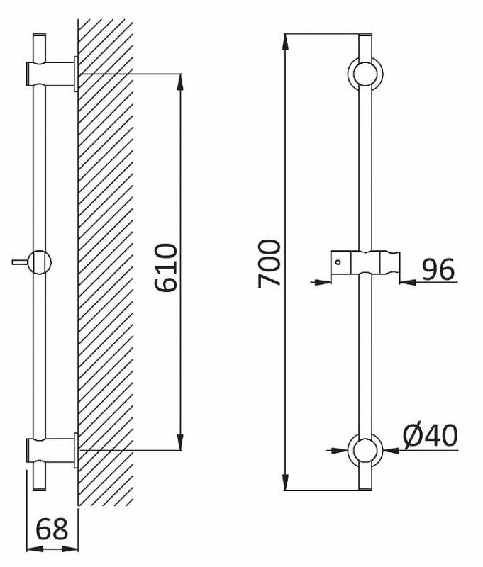 Душевая штанга Cezares (70 см) черный матовый CZR-B-SD-NOP