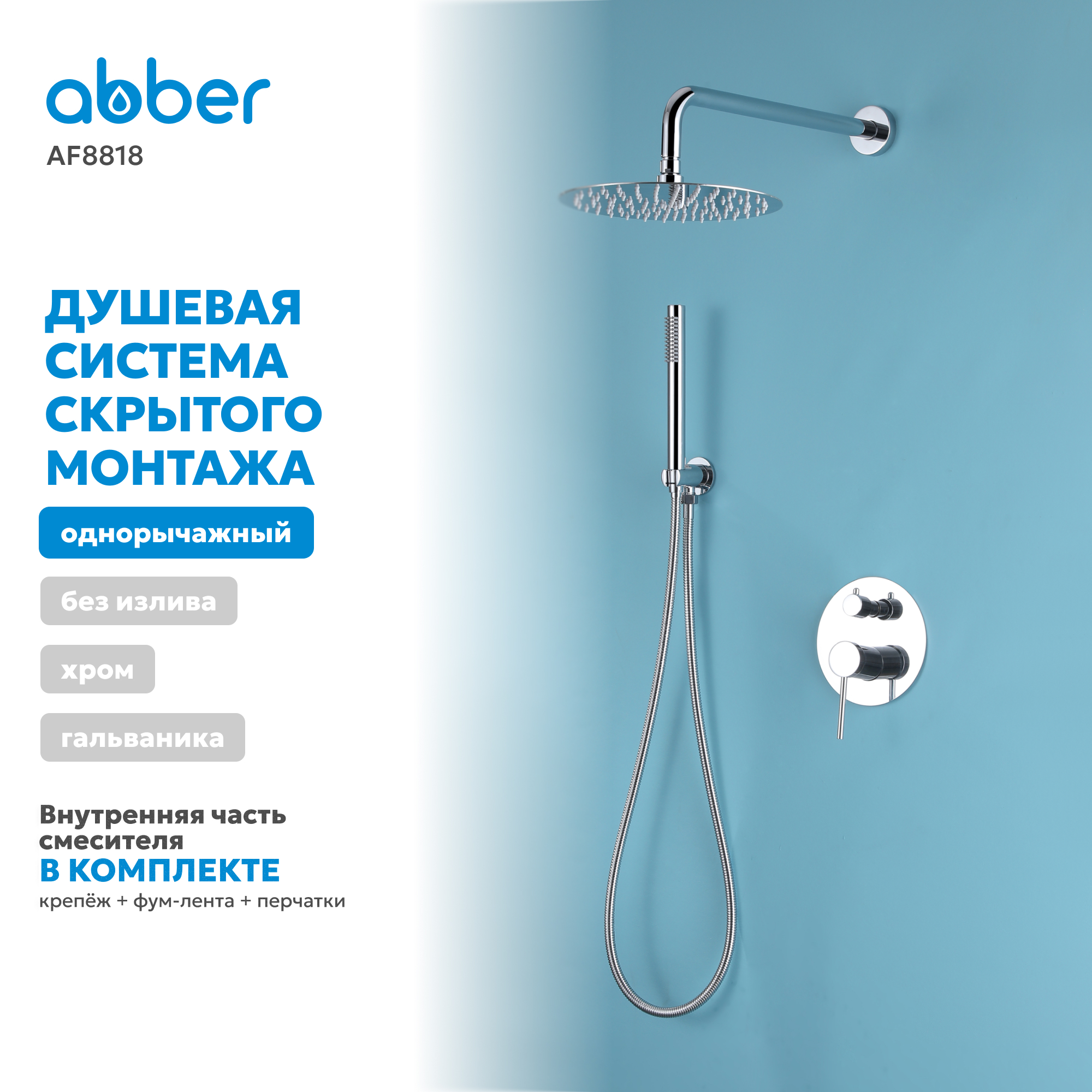 Душевая система ABBER Emotion скрытого монтажа без излива хром AF8818