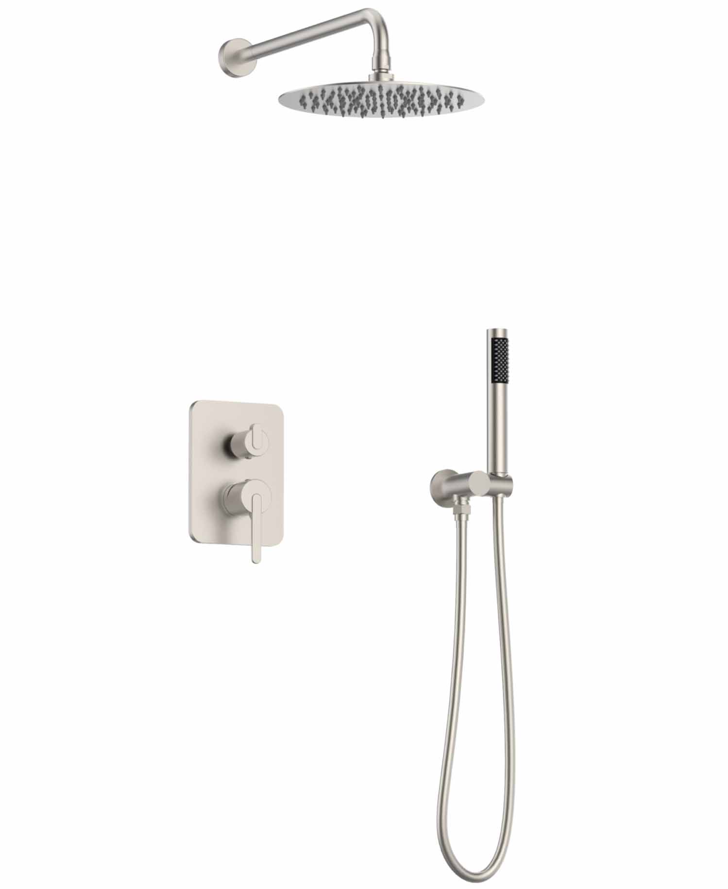 | В комплекте | Встраиваемая часть, смеситель, штуцер/держатель ручного душа, ручной душ, шланг, верхний душ |