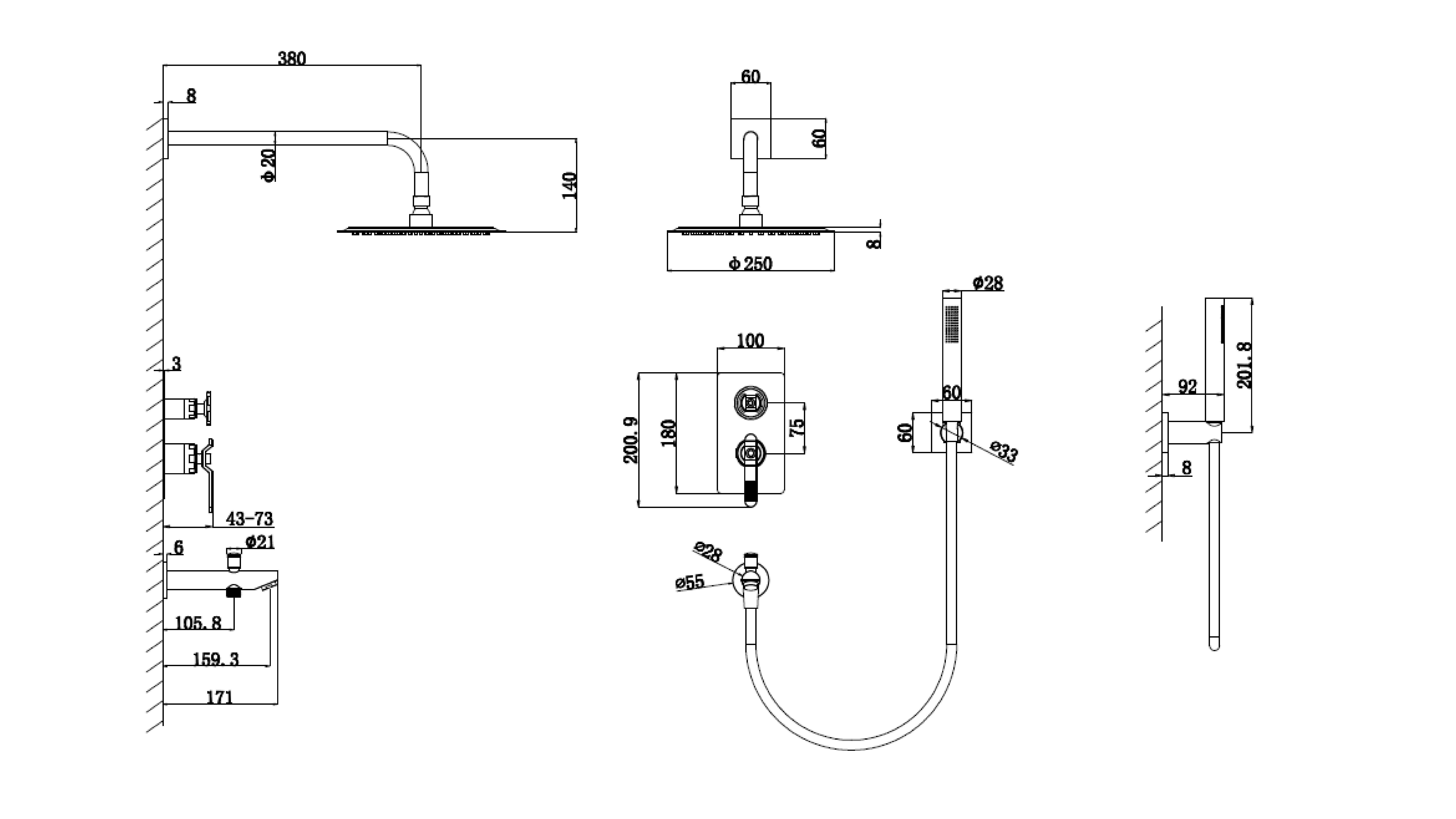 | В комплекте | Смеситель, душ, ручная лейка, детали для монтажа, шланг, излив |