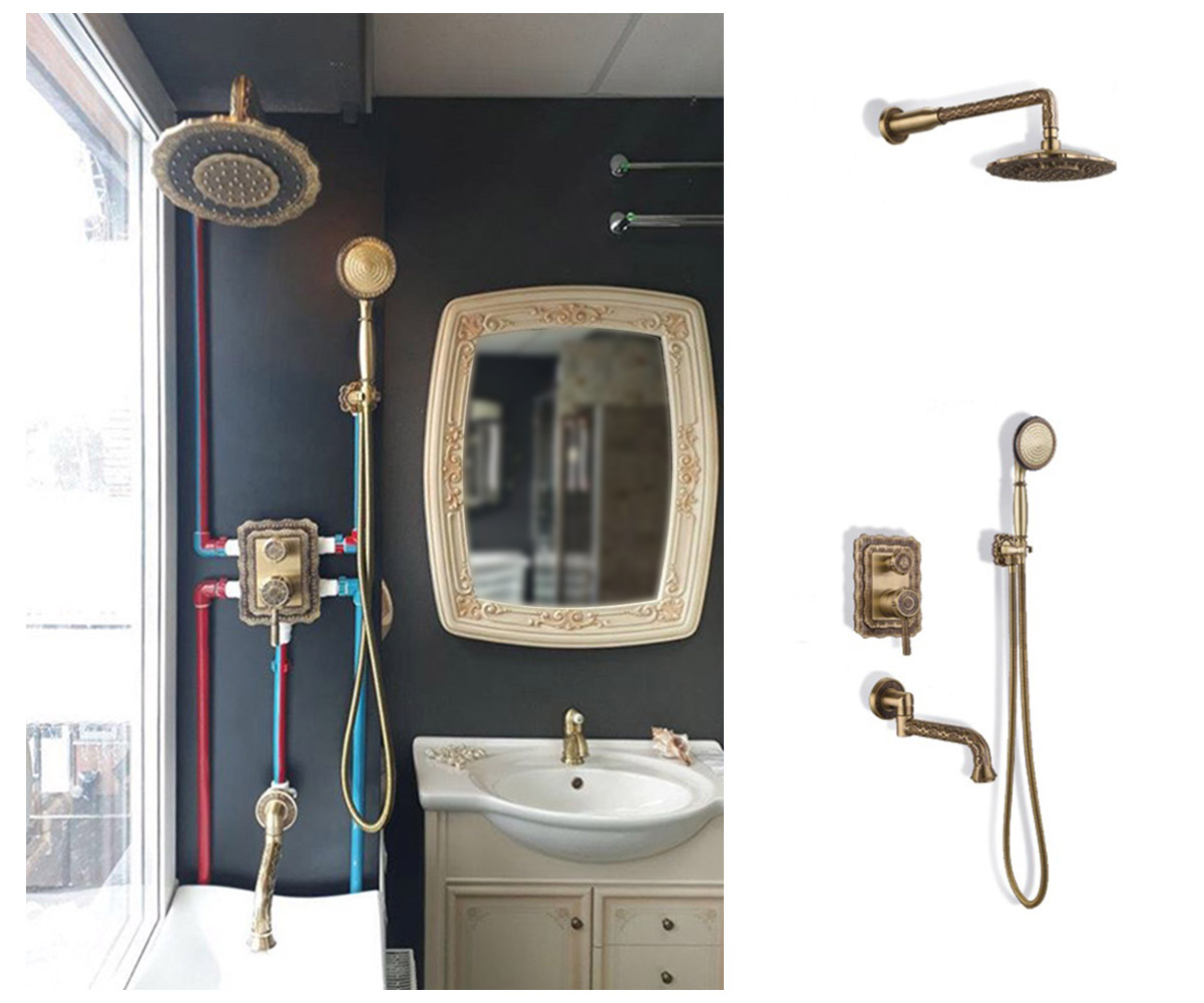 Смеситель для душа,верхний душ, ручной душ, шланг для ручного душа; набор для подключения, гарантийный талон.