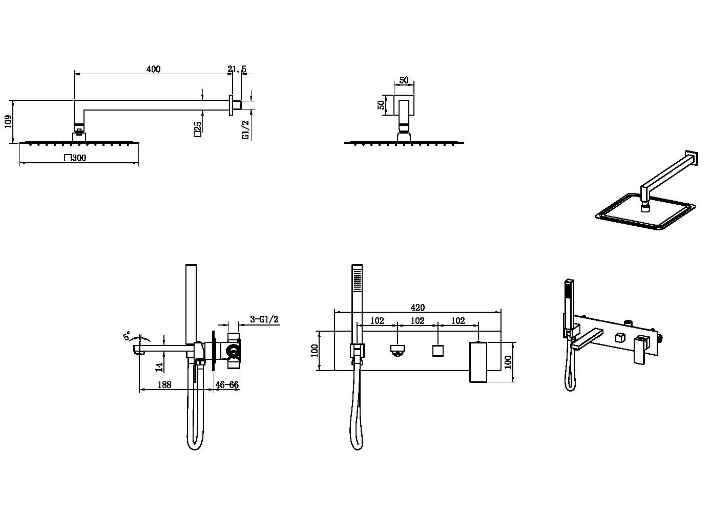 | В комплекте | Внутренняя часть, излив, шланг, лейка, держатель для душа |
