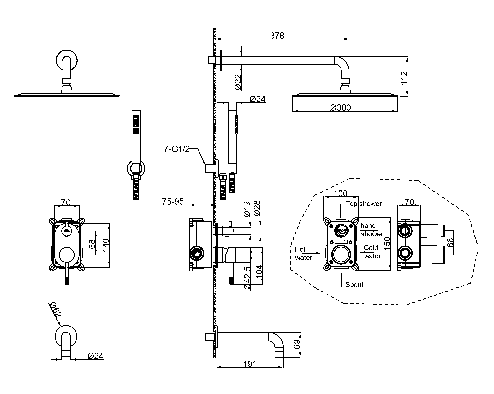 | В комплекте | Внутренняя часть, шланг, лейка, кронштейн, переключатель потоков, излив |