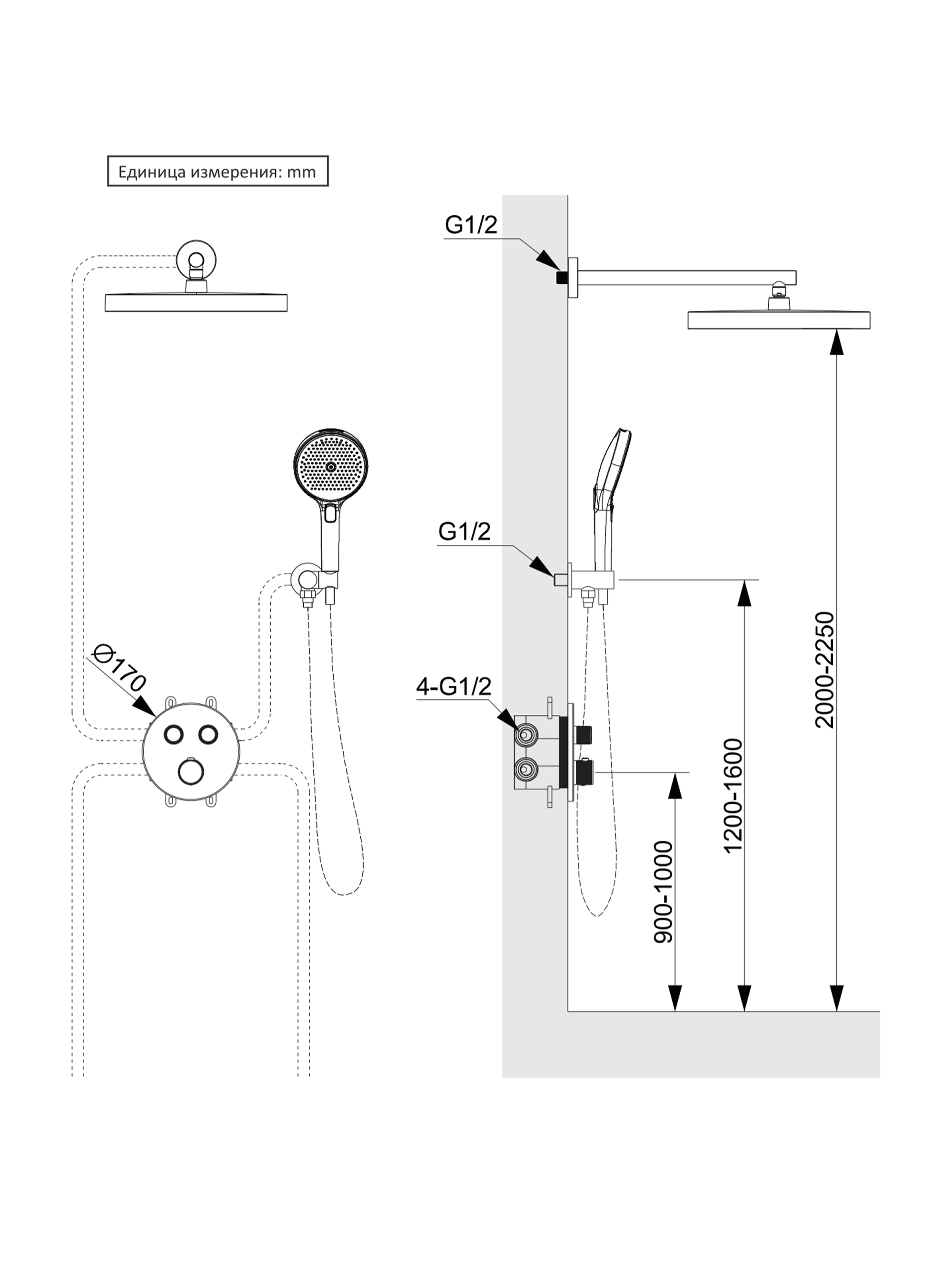 | Верхний душ, см | 32/ пластик/ 1 режим/ с изменяемым углом |