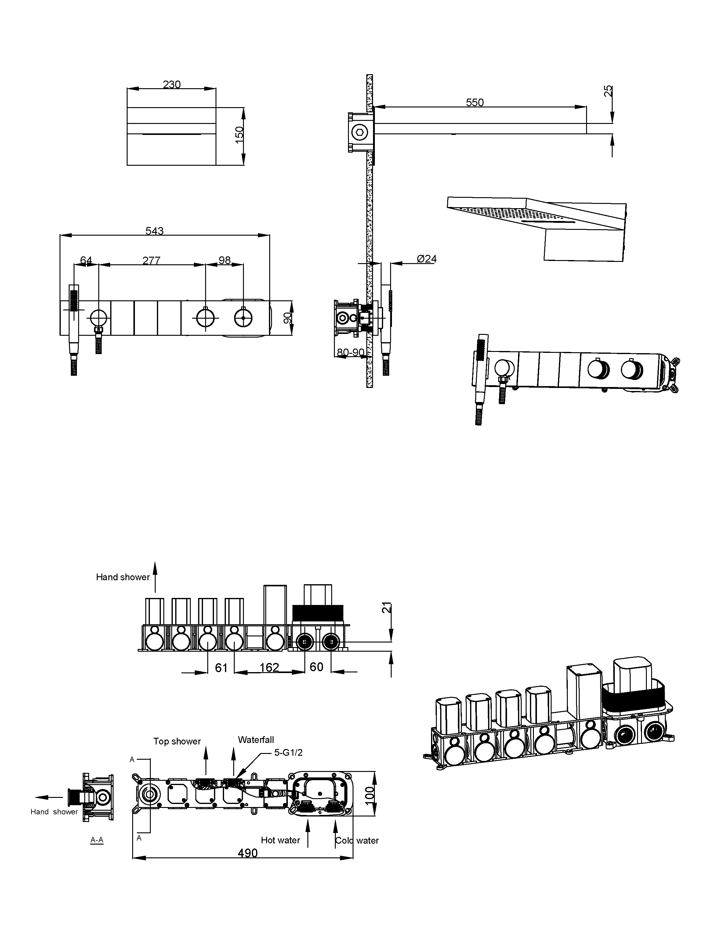 | Верхний душ, см | 55х23 |