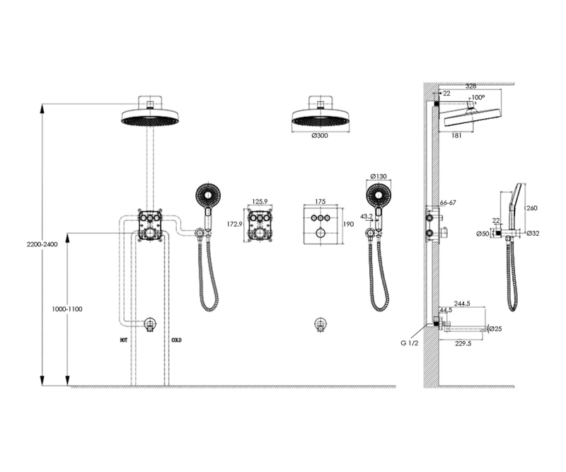 | В комплекте | Смеситель для душа, верхний душ, ручной душ, шланг для ручного душа, крепления, держатель |