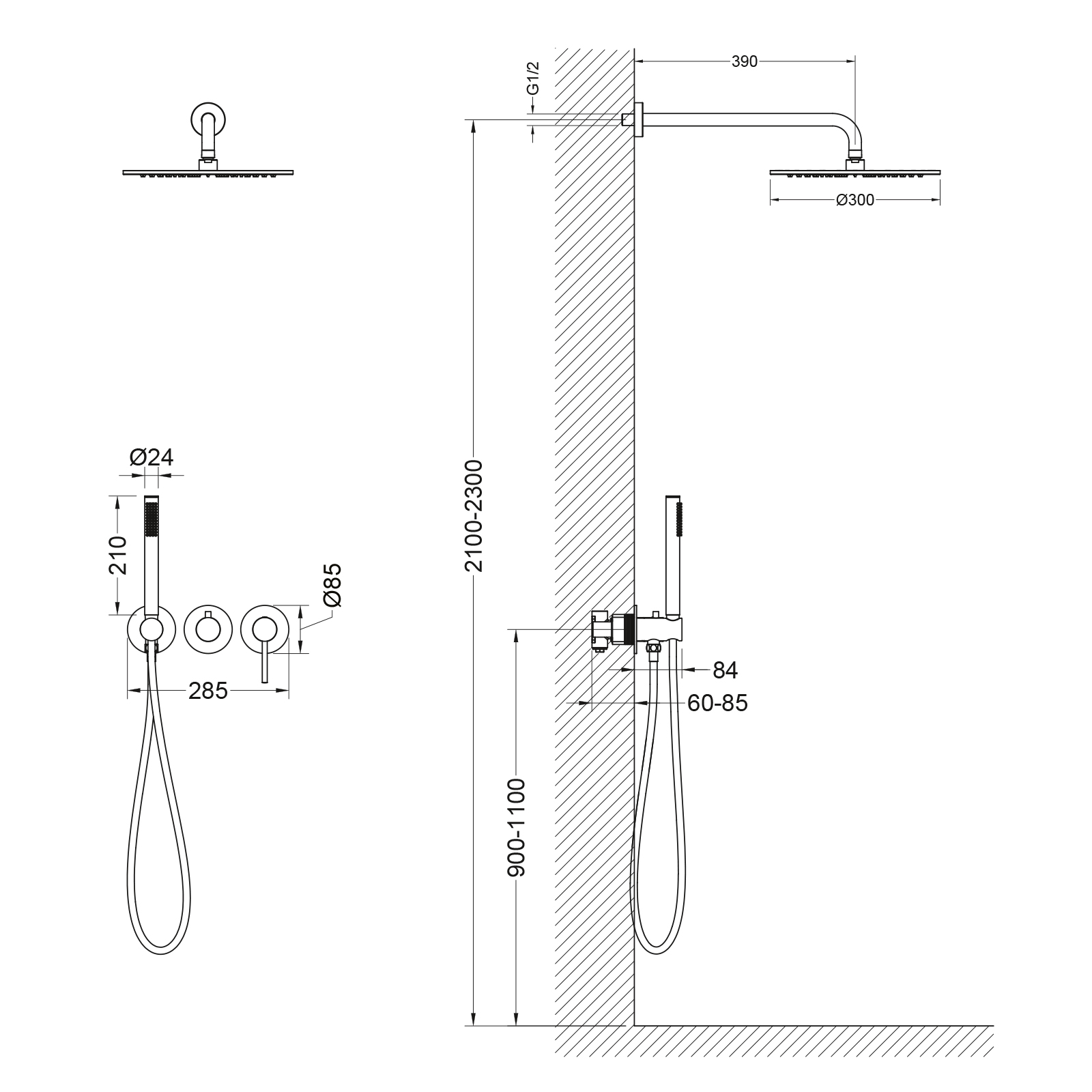 | Верхний душ, см | 30/ латунь/ угол наклона регулируется |