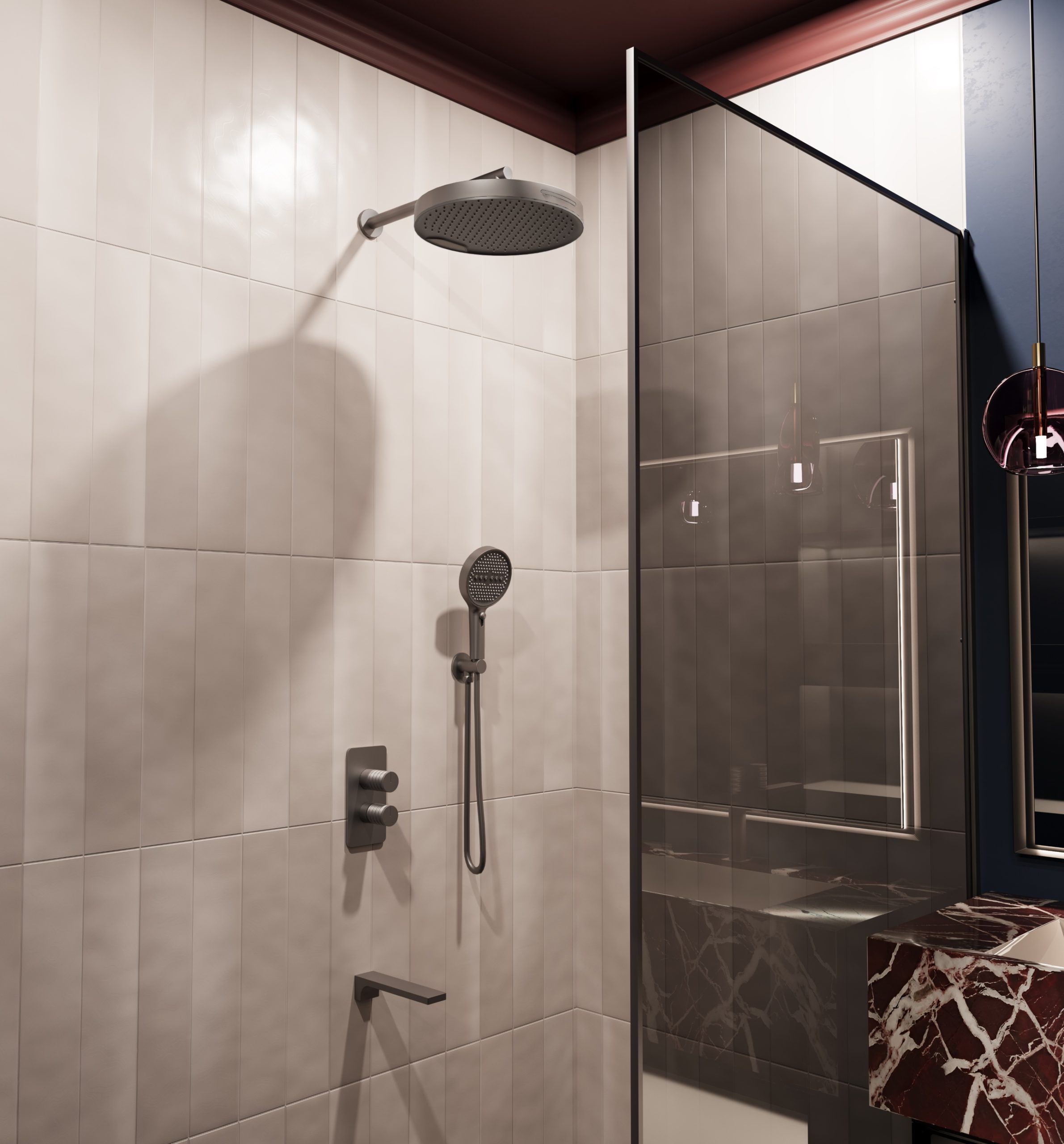 | В комплекте | Верхний душ, ручной душ, смеситель со встраиваемой частью, излив |