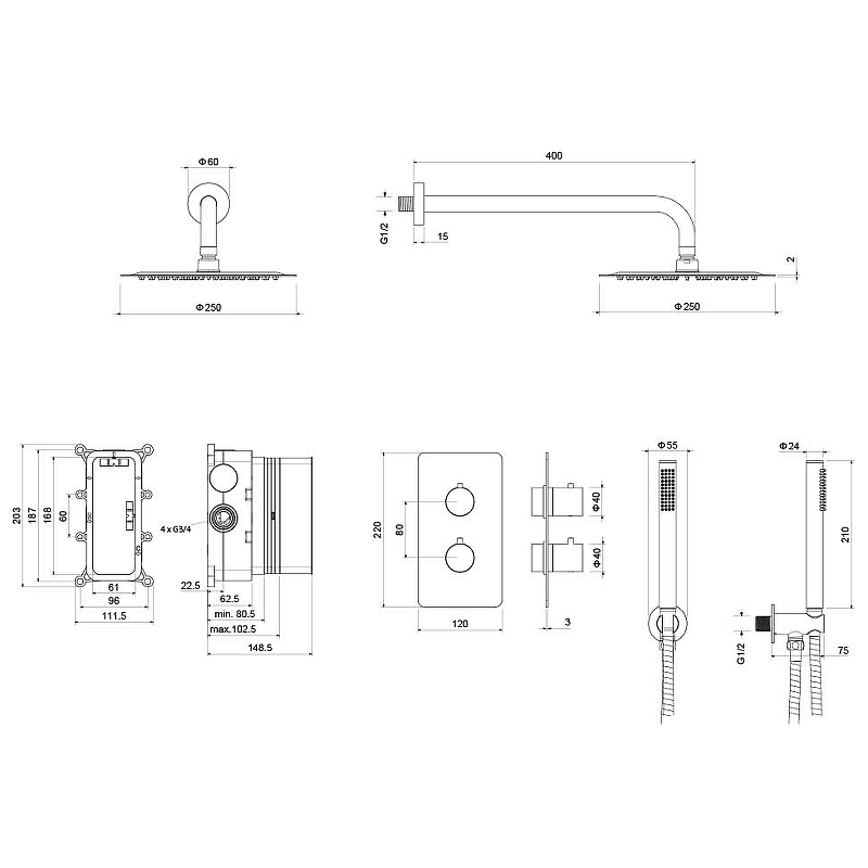 | В комплекте | Термостат, верхний душ, душ гарнитур |