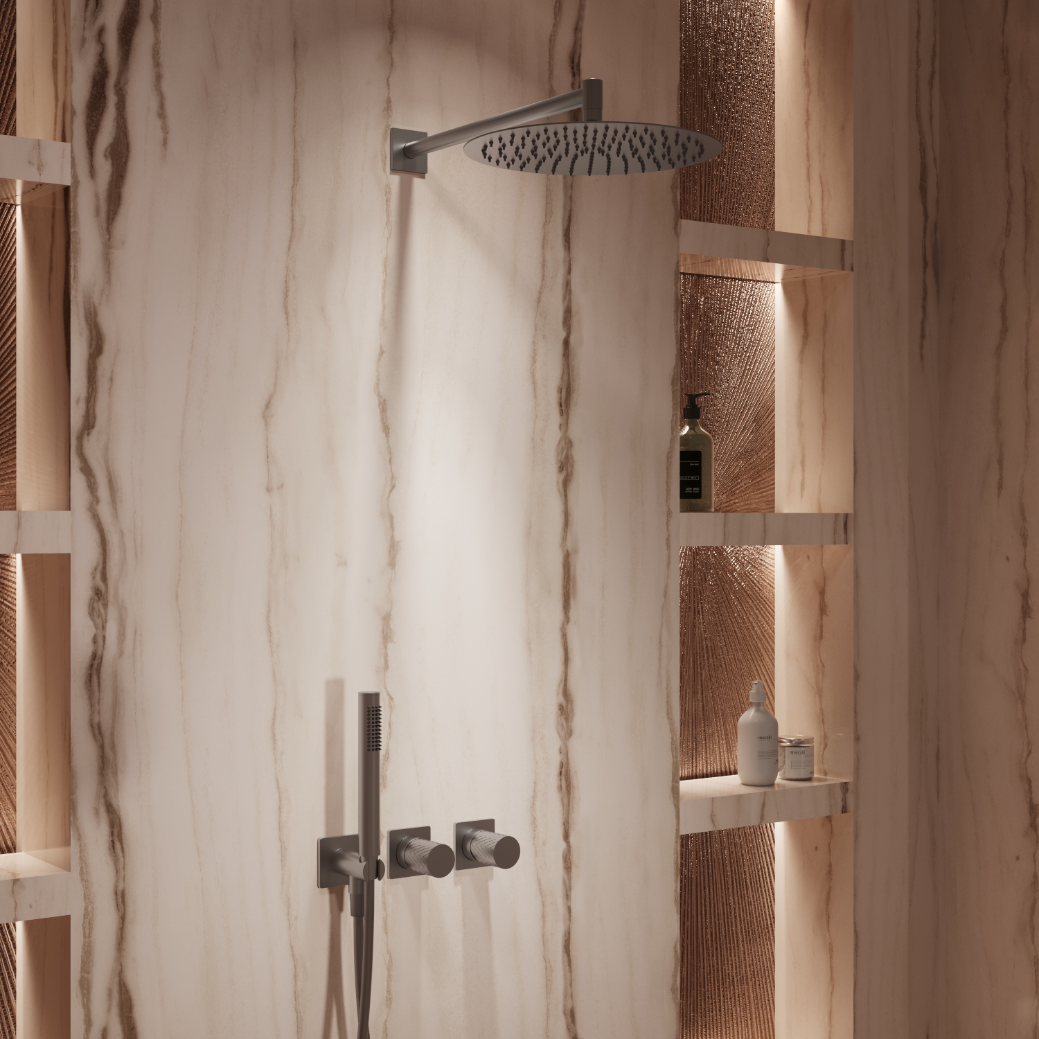 | В комплекте | Верхний душ, ручной душ, смеситель со встраиваемой частью |