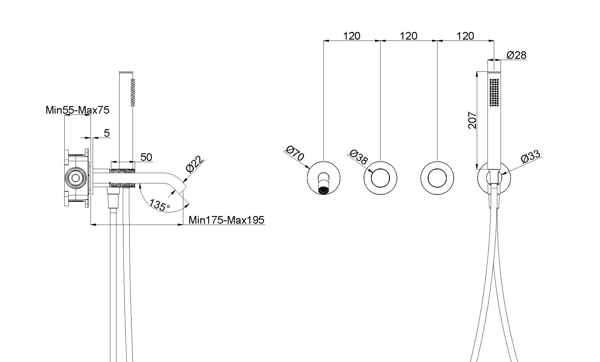 | Ручной душ, см | 2,8х20,7 |
