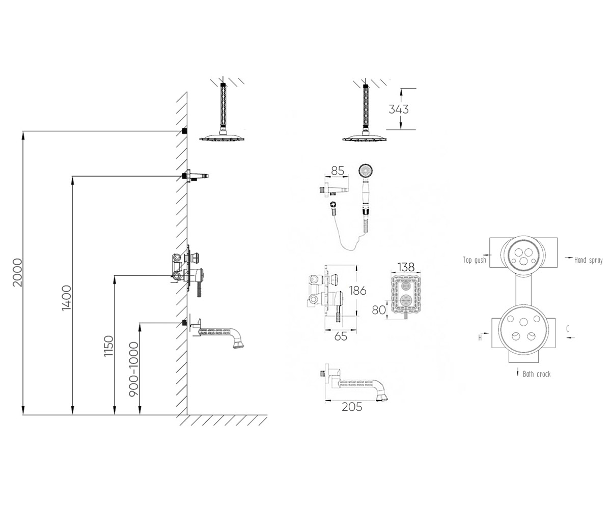 | В комплекте | Смеситель для душа, верхний душ, ручной душ, шланг для ручного душа, крепления, держатель |