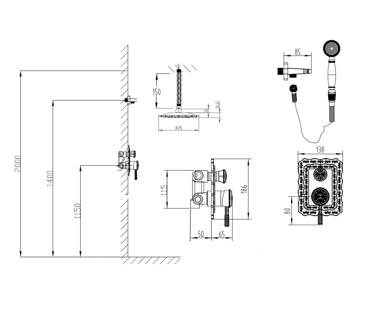 | В комплекте | Смеситель для душа, верхний душ, ручной душ, шланг для ручного душа, крепления, держатель |