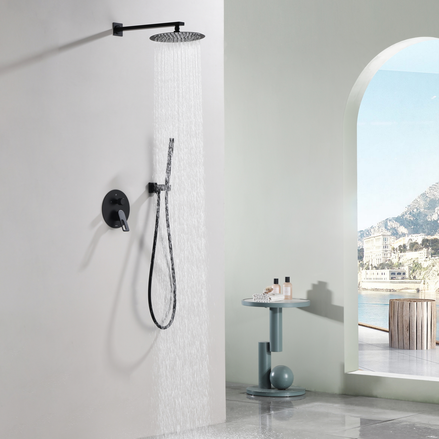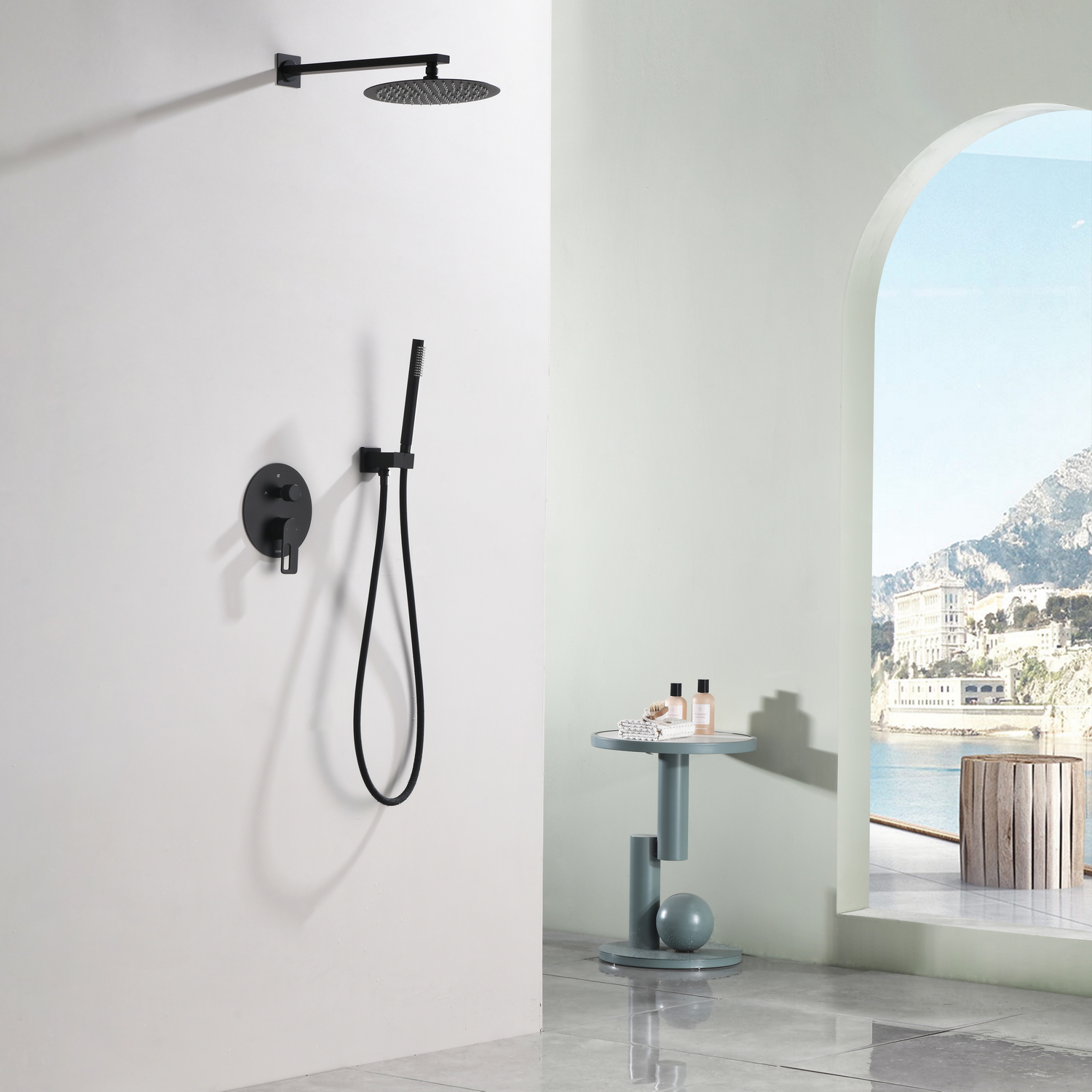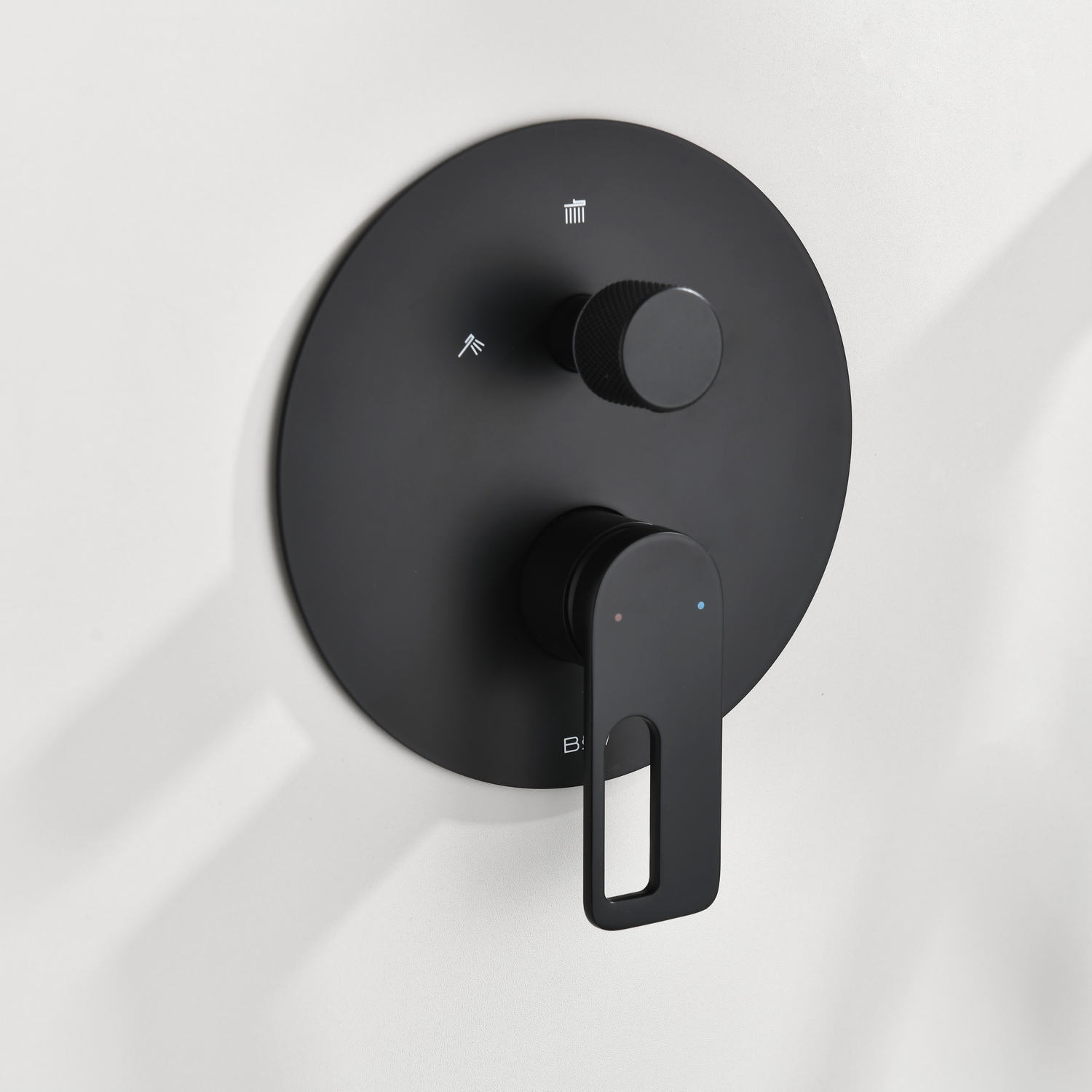 Душевая система скрытого монтажа Black&White в цвете черный матовый – минимализм и функциональность в одном изделии для Вашей новой ванной комнаты. Элементы продукта за исключением леек изготовлены из сантехнической латуни – ресурсного и безопасного для здоровья сплава, а ручной душ и верхняя лейка – из армированного ABS пластика. Для включения и настройки температуры воды установлен керамический картридж и поворотный дивертор. Данное решение позволит сэкономить свободное пространство внутри душевой зоны и сократит количество поверхностей для уборки, а пересечение в концепции дизайна круглых и квадратных форм наполнит Вашу душевую зону уютом и стилем.