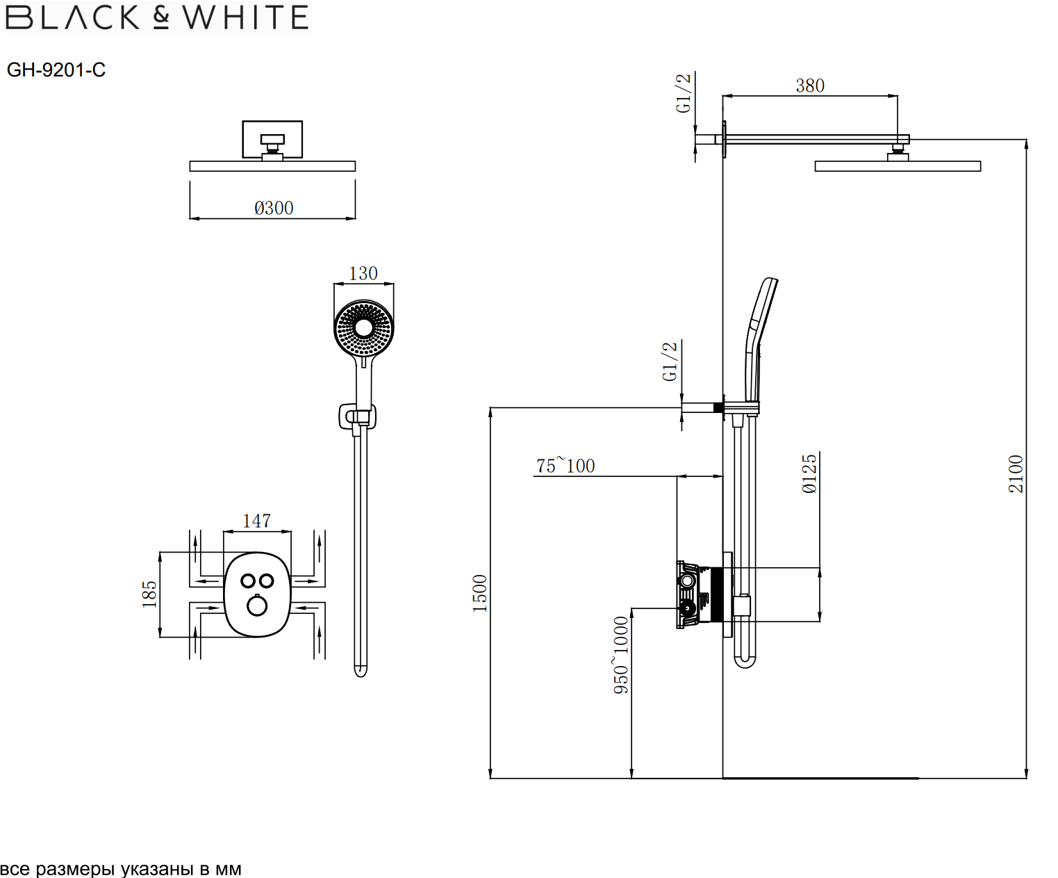 Встроенная душевая система Black & White Gravity хром GH9201C
