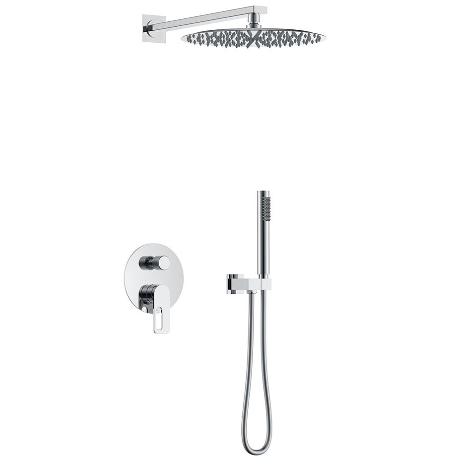 Душевая система скрытого монтажа Black&White в цвете глянцевый хром – минимализм и функциональность в одном изделии для Вашей новой ванной комнаты. Элементы продукта за исключением леек изготовлены из сантехнической латуни – ресурсного и безопасного для здоровья сплава, а ручной душ и верхняя лейка – из армированного ABS пластика. Для включения и настройки температуры воды установлен керамический картридж и поворотный дивертор. Данное решение позволит сэкономить свободное пространство внутри душевой зоны и сократит количество поверхностей для уборки, а пересечение в концепции дизайна круглых и квадратных форм наполнит Вашу душевую зону уютом и стилем.