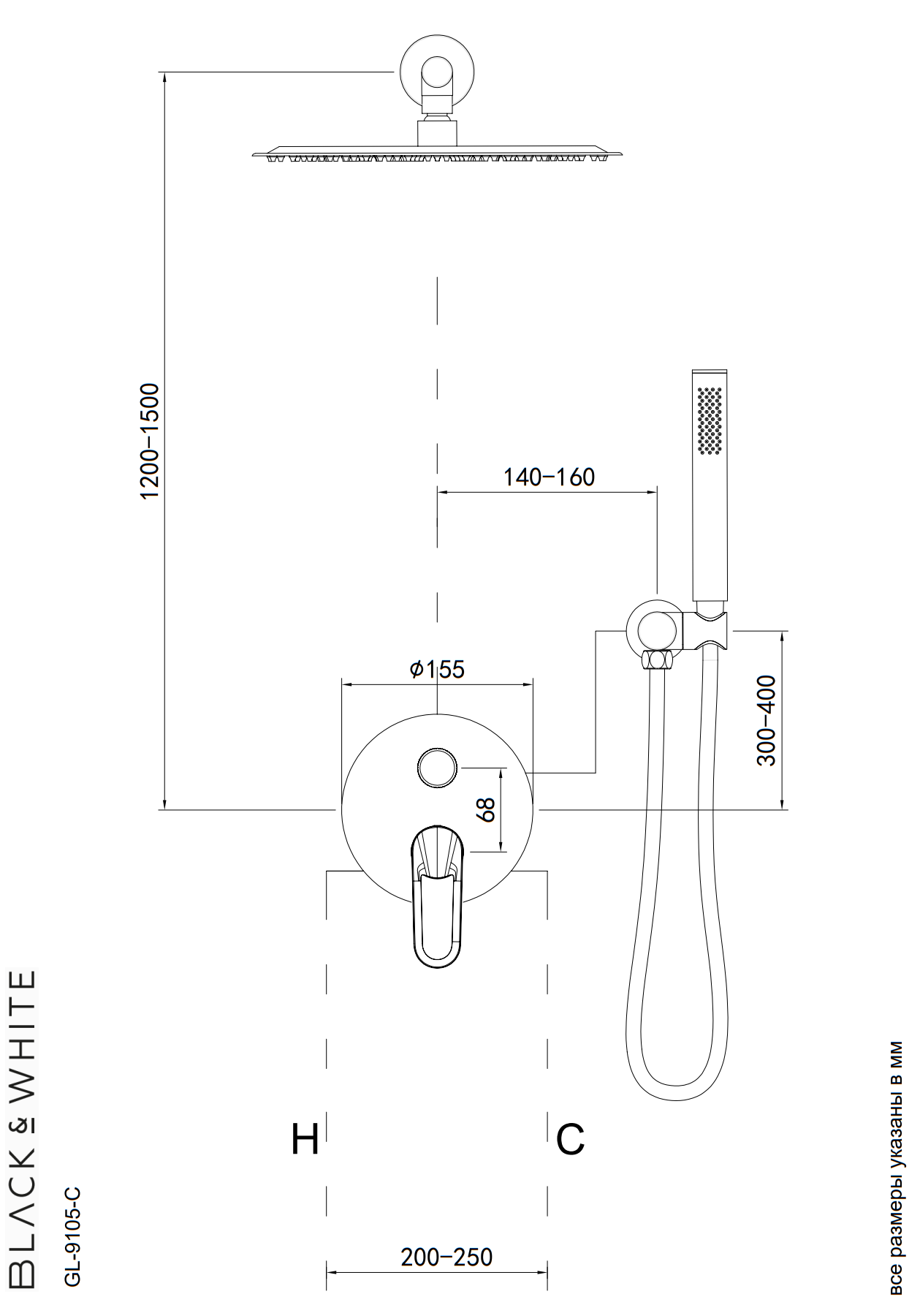 Встроенная душевая система Black & White Gravity хром GL9105C