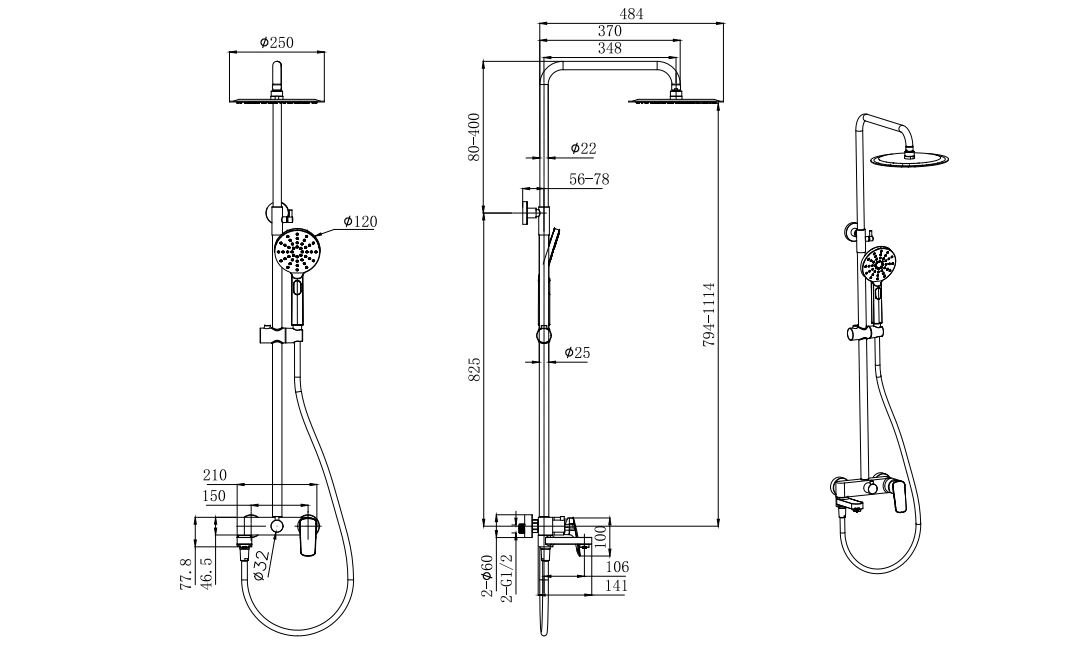 • регулируемая душевая штанга из нержавеющей стали, выдвигающаяся до 1114 мм в высоту