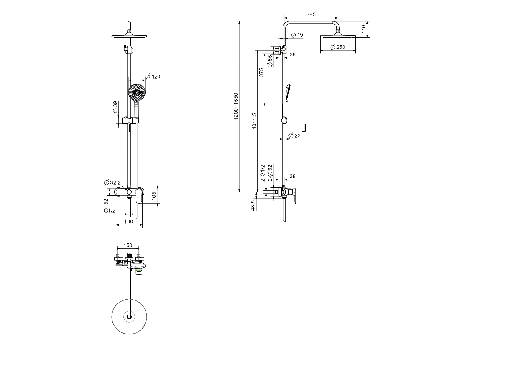 • регулируемая душевая штанга из нержавеющей стали, выдвигающаяся до 1500 мм в высоту