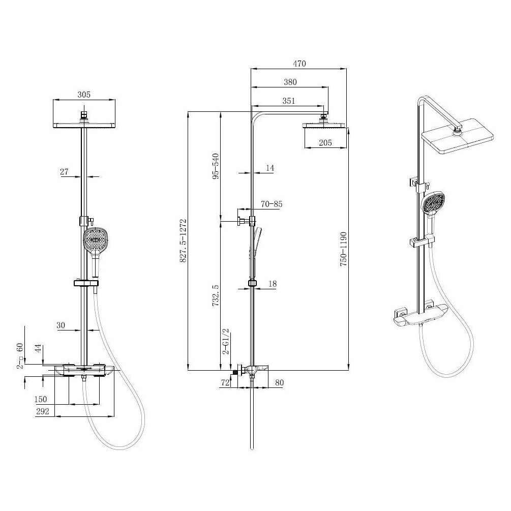| Верхний душ, см | 30,5х20,5/ ABS |