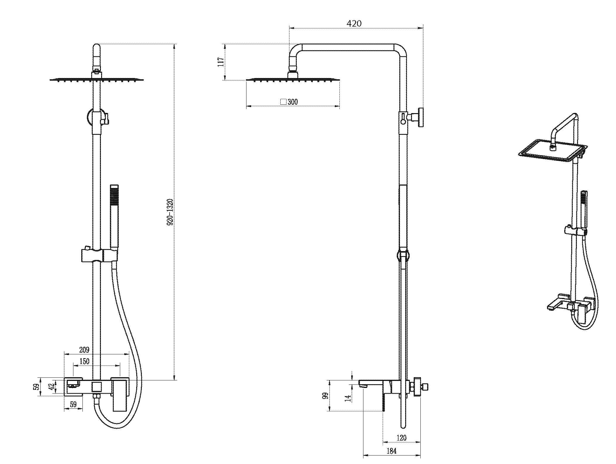 | В комплекте | Верхний душ, душевой гарнитур, излив, держатель для душа, шланг, душевая лейка, переключатель потоков |