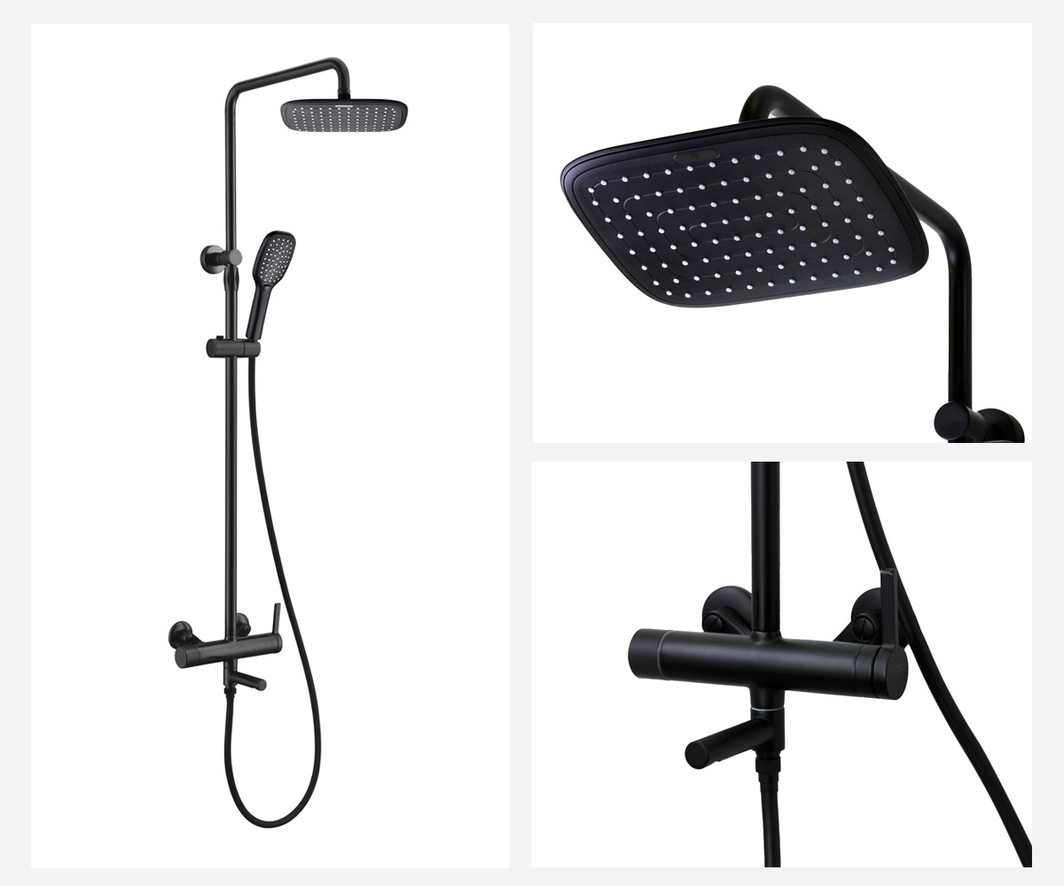 | В комплекте | Смеситель, штанга, шланг, верхний душ, ручной душ, крепления |