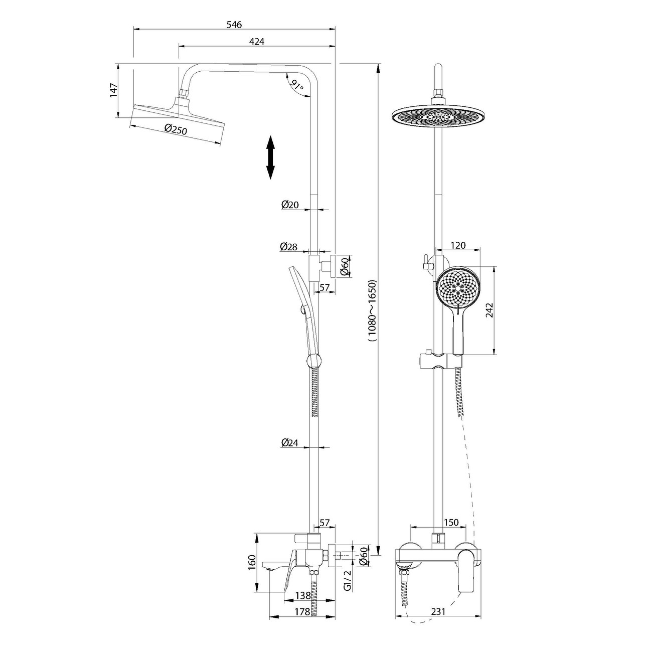 | Ручной душ, см | ABS-пластик 12х24.2 см, 3 режима |