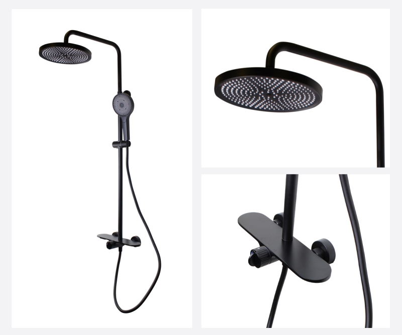 Душевая стойка каскадный излив Bronze de Luxe Айкон черный матовый 80112CB
