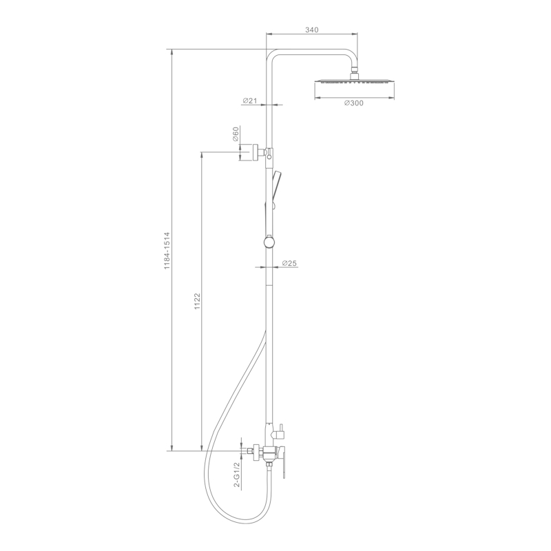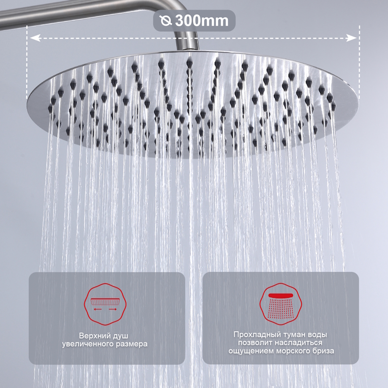 Верхний душ - ∅300мм (нержавеющая сталь).
