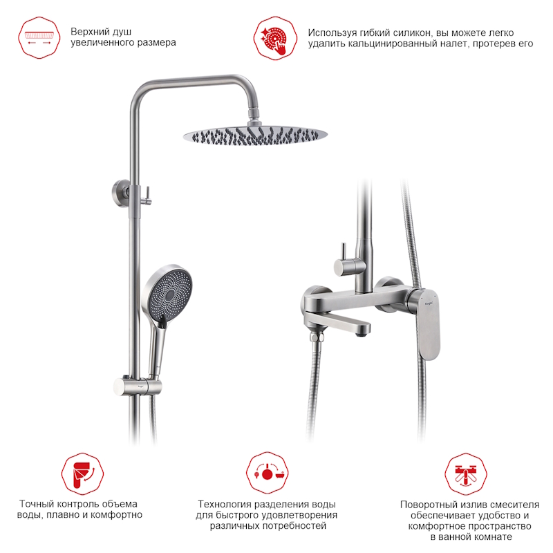 | Верхний душ, см | 30/ сталь |