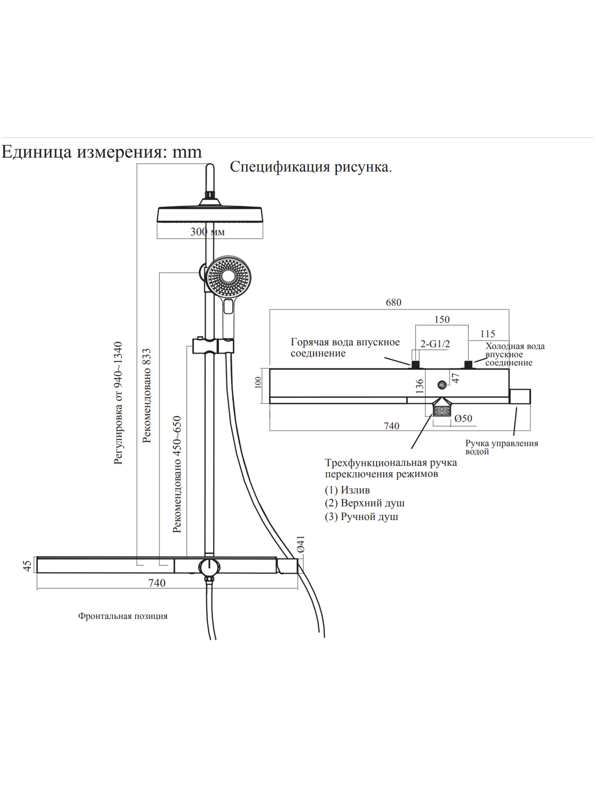 | Ручной душ, см | 26/ пластик/ 3 режима |