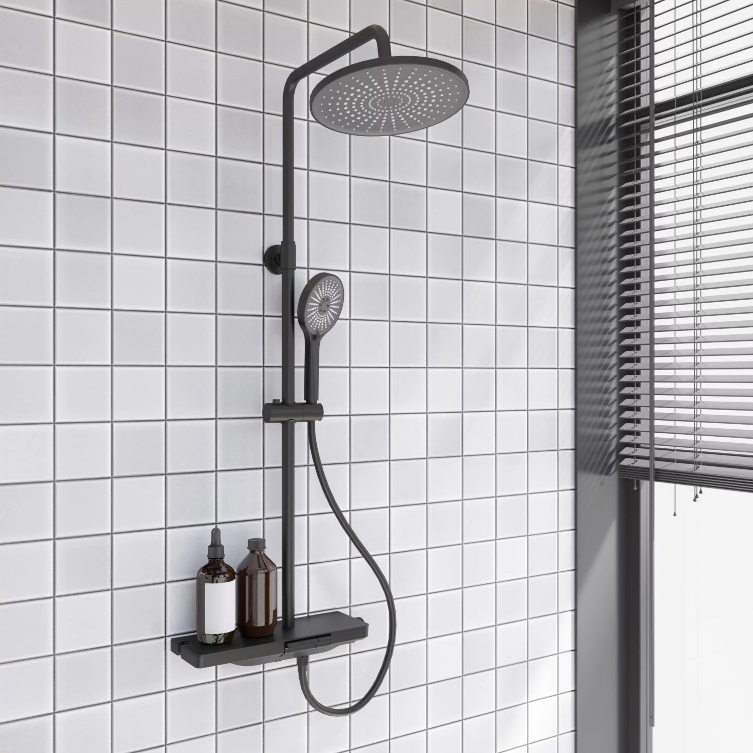 Душевая стойка с полкой Veconi ENNA black черный матовый EN-200-B-C4