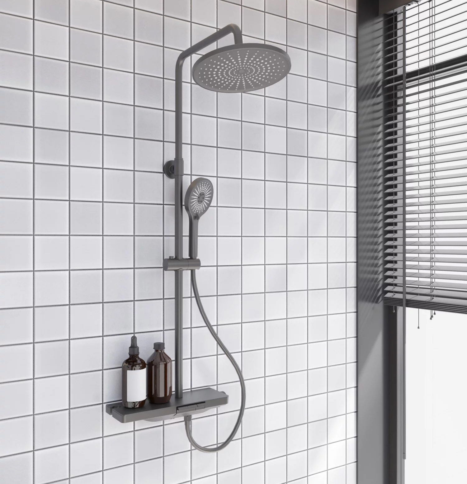 Душевая стойка с полкой Veconi ENNA brushed graphite графит брашинг EN-200-GR-C4