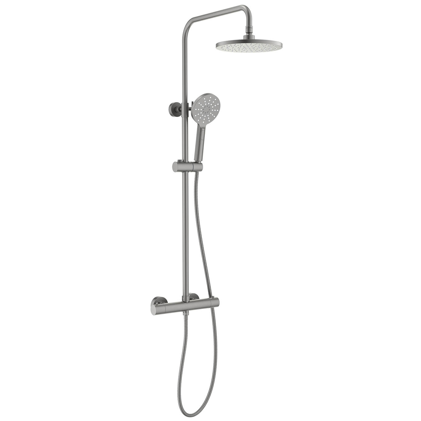 - Душевая стойка с термостатом Акватек Европа оружейная сталь AQ2343BGM