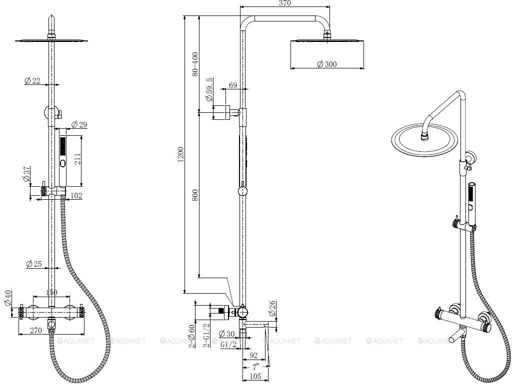 | Шланг, см | 150/ сталь (EPDM inside, anti-twist, brass nut) |