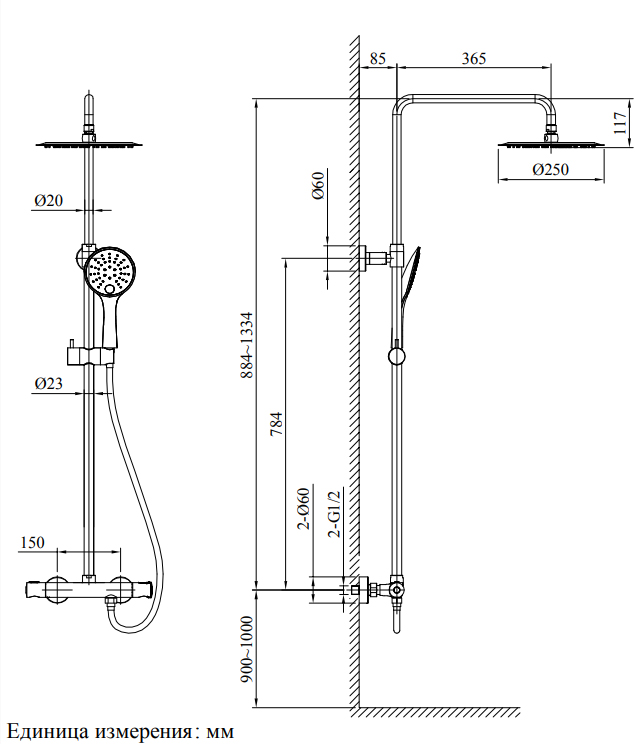 | Верхний душ, см | 25/ латунь/ 1 режим/ изменяемый угол наклона |
